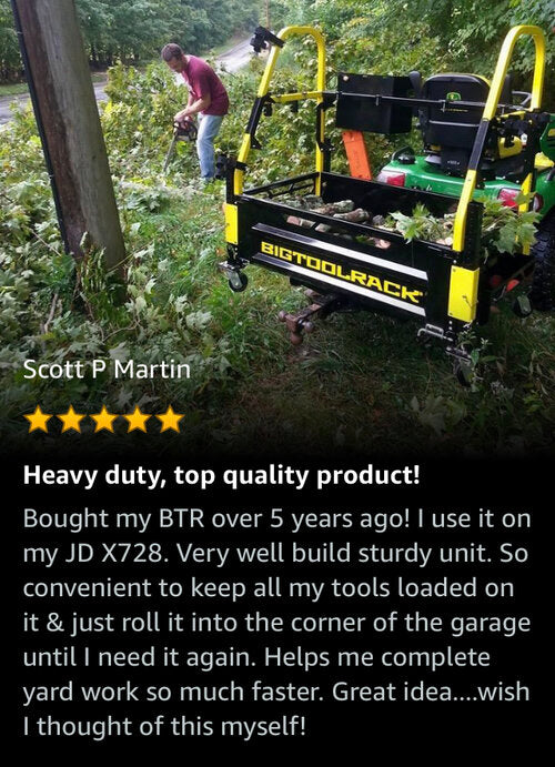 It’s a mobile tool storage solution. Keeps your tool nice neat secure and organized on and off your tractor, you can just roll it around using our telescoping wheels once disconnect. Then when you are ready to use it again roll it up click it on and away you go, no more wasting time searching for the tools you need...